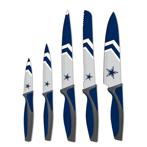 This kitchen knife set is the perfect way to show off your team spirit all year long! It includes all the essentials for everyday food prep: a chef knife, bread knife, carving knife, utility knife, and paring knife. Each knife is made from high-quality stainless steel and features ergonomic, non-slip handles for comfort and better control. they are also dishwasher safe for easy cleaning. The ideal gift for the aspiring chef or the loyal sports fan in your life!