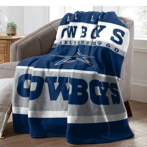 This cozy throw blanket is perfect for any Cowboys fan! Measuring 60”W x 80”L, it’s oversized and features the team name and logo in soft, warm raschel fabric. It’s machine washable and perfect for cuddling up on the couch or taking to the game. This throw is lightweight and portable, but made of quality materials that keep them warm at home or any venue.