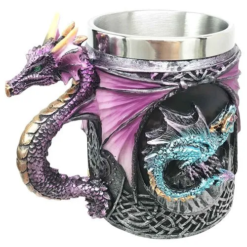 There is nothing better than waking up to a great cup of coffee! And, when it’s served in an Exotic Purple Dragon Mug, the experience is altogether more special. This Purple Dragon Mug is 4.5 inches tall and features a spectacular sculptural gothic dragon encasing a washable stainless steel liner that can hold 13.6 oz of liquid.