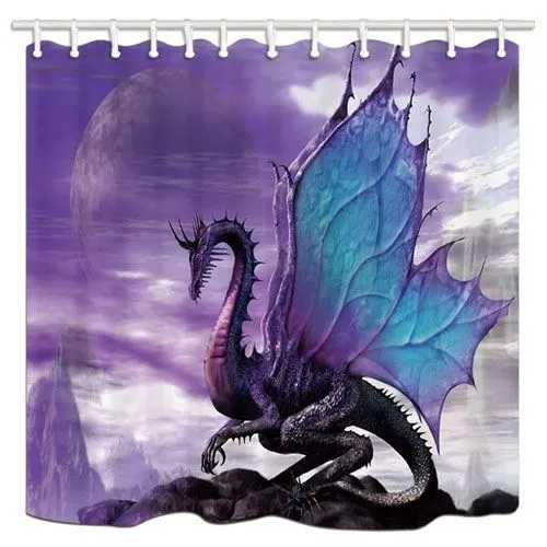 Complete any youngster’s dragon collection with a fantasy-themed purple dragon shower curtain. The 3D printing of the dragon image on the high-quality polyester curtain is non-fading and is 100% machine washable. The vivid colors and detailed imagery adds a whole lot of oomph to its surroundings. And it even comes with free shower curtain hooks too.