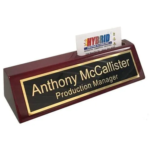 Make them feel like a true business owner by gifting them this personalized desk nameplate. This personalized gift is the perfect item for encouragement and inspiration. With a sturdy block base and black brass engraved plate, their desk will instantly look professional and sophisticated. The built in cardholder is also perfect for storing business cards for their customers.