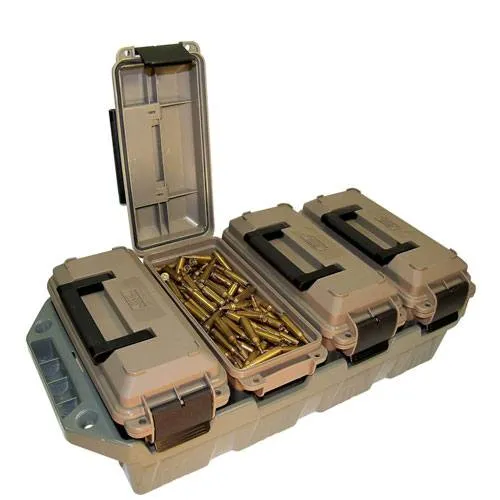 Keep their ammo organized with this four can ammo crate by MTM. Perfect for easier carrying and transportation of multi-caliber ammunition, each crate can hold a different caliber to keep everything nicely organized. Stackable and easy to tie down, these ammo crates are a must-have for any serious gun lover.