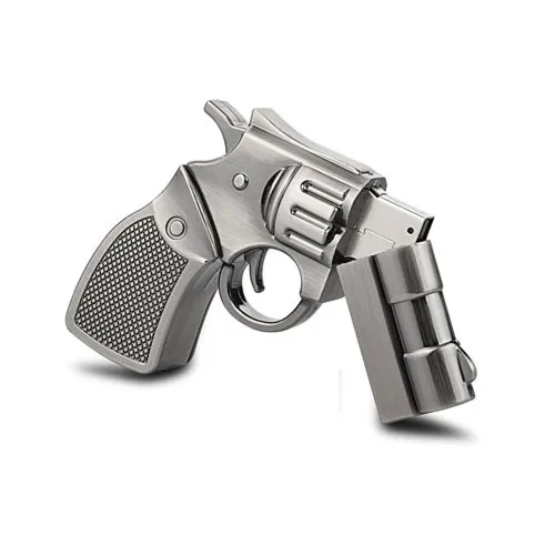 Great for backing up important data and files, this USB gun-shaped pen drive is perfect for carrying around. Made from chrome and ringstone, this 32GB drive has enough space to store plenty of videos, documents, pictures or music. Compatible with all operating systems, this high-speed flash drive is sure to come in handy.
