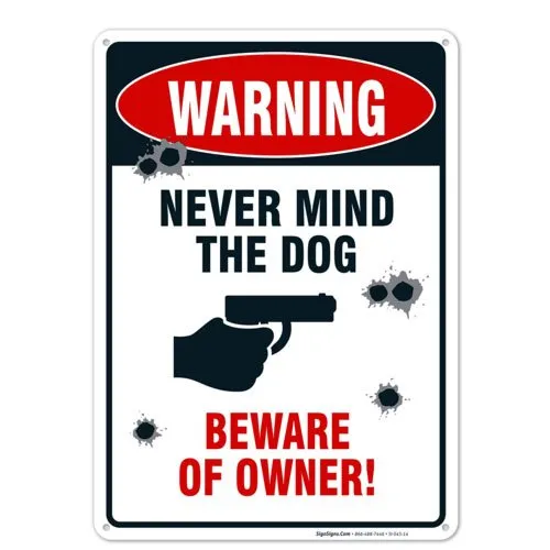 Never mind the dog, beware of the owner! This funny no trespassing sign is a great addition to any home. Rust-free and made from aluminium with a UV protection layer, this sign has been designed to be long-lasting even in the harshest weather environments. Easy mounting and suitable for both indoors and out, this sign is great for homes and businesses.