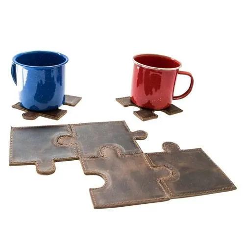 14. Leather Puzzle Coaster Mats