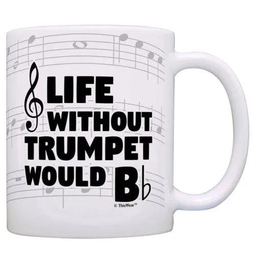 A funny gift for any trumpet player, remind them how dull their life would be without the sweet sound of their trumpet. Featuring the text “life without trumpet would b flat”, this mug is made from quality ceramic making it both dishwasher and microwave safe. Printed on both sides and packaged in a gift box, this is an excellent gift for any player.