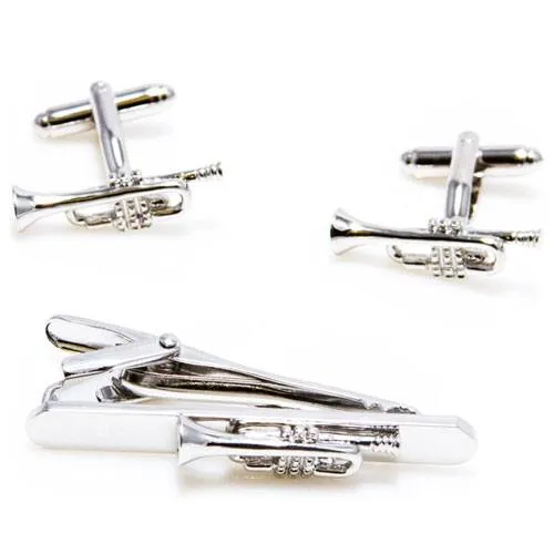Let everyone know their love for trumpets with these super cool trumpet cufflinks. Perfect for wearing to any formal event, these high-quality cufflinks come with a beautiful presentation box and microfiber cloth to clean them. The set also includes a trumpet tie bar to complete the look.
